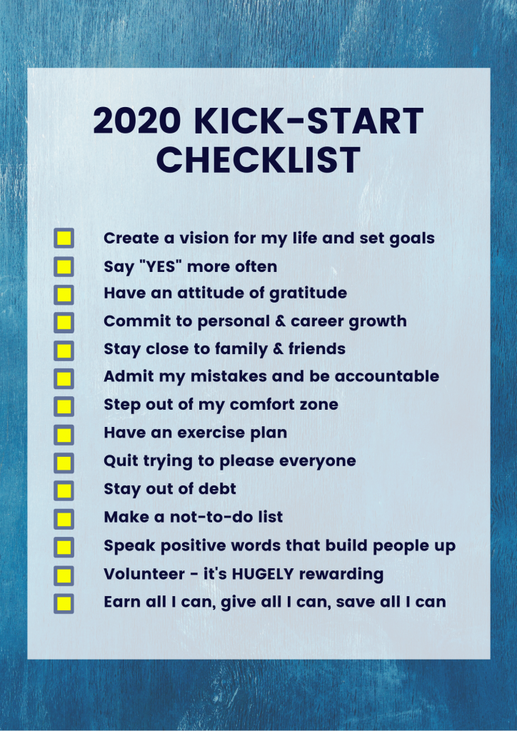 We have put together a simple checklist, although not exhaustive, to inspire you and help you reach for worthwhile goals that will release life-changing rewards. Most of the suggestions on this checklist are really easy to implement. So, go ahead start checking them off and have an awesome, successful and rewarding 2020!