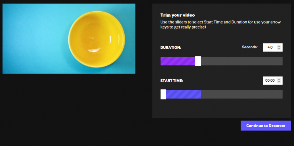 2. At this point you are able to trim your video. This means that by using the sliders you are able to pinpoint the section of the video you want to use and choose its length.