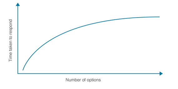 According to Interaction Design Foundation, the Hick-Hyman Law states that the more choices an individual has, the longer it takes for them to make a decision. Their action or buying-decision is likely to be abandoned when the user is overwhelmed with choices.