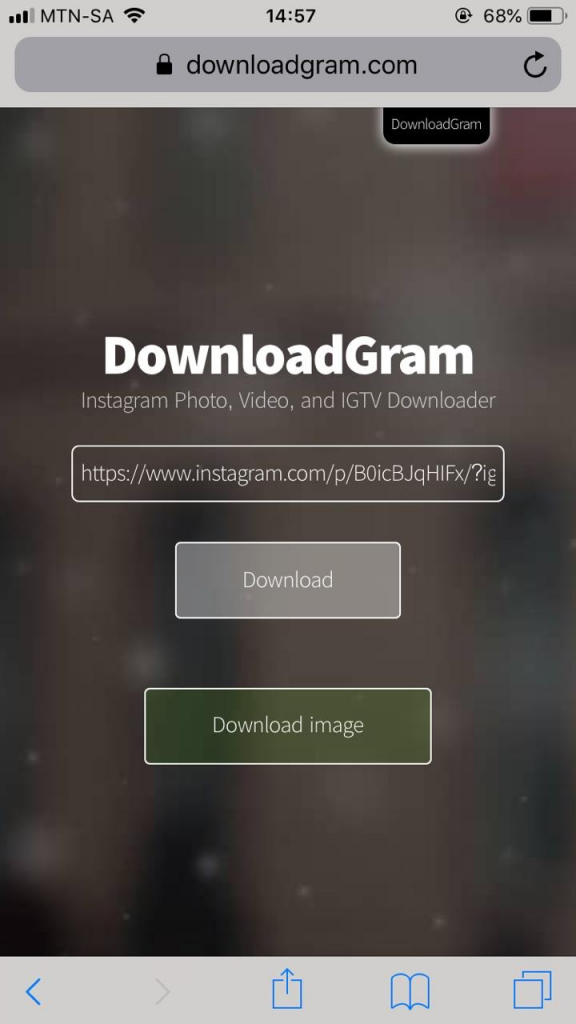 2. Paste the copied URL into DownloadGram. Tap Download and then Download Image.